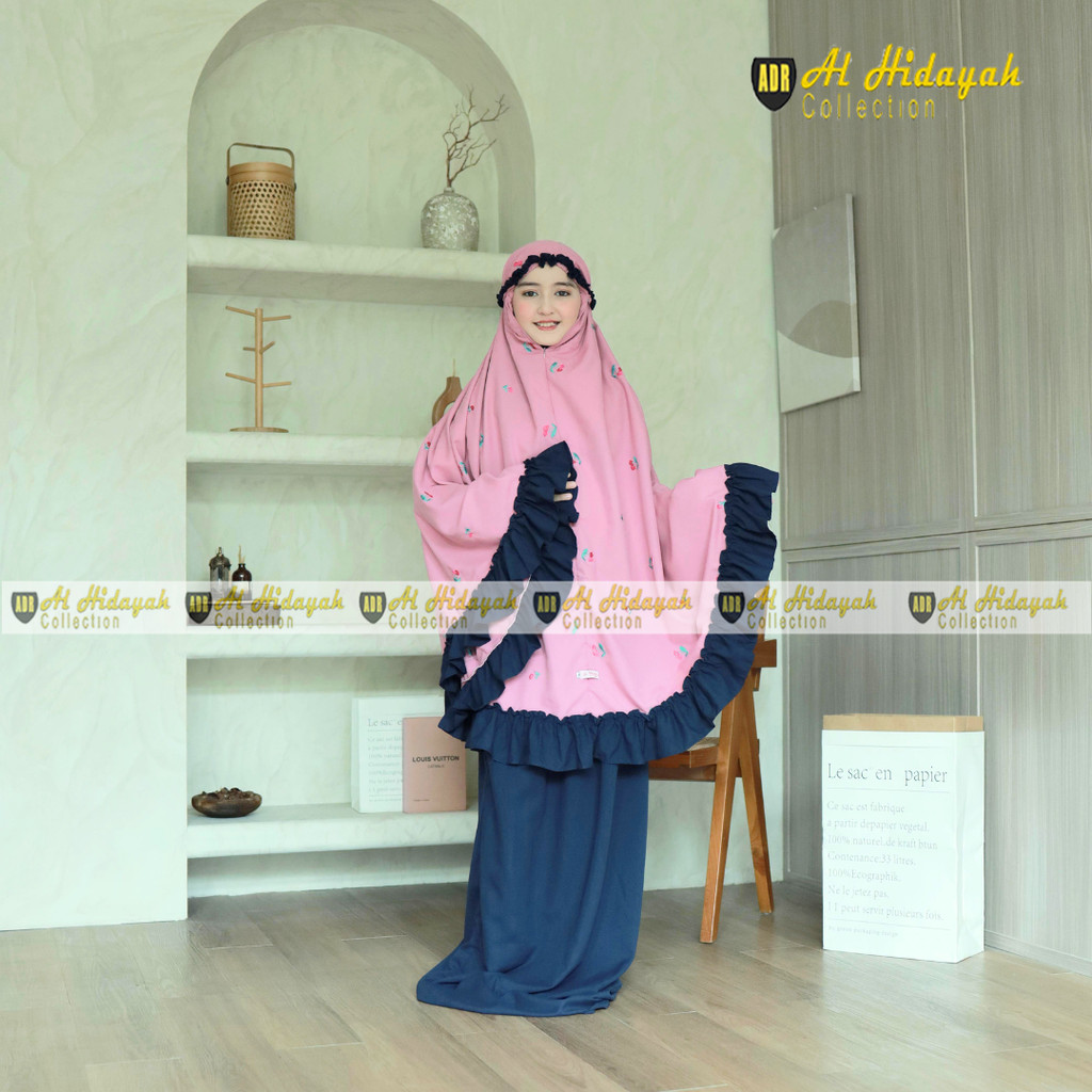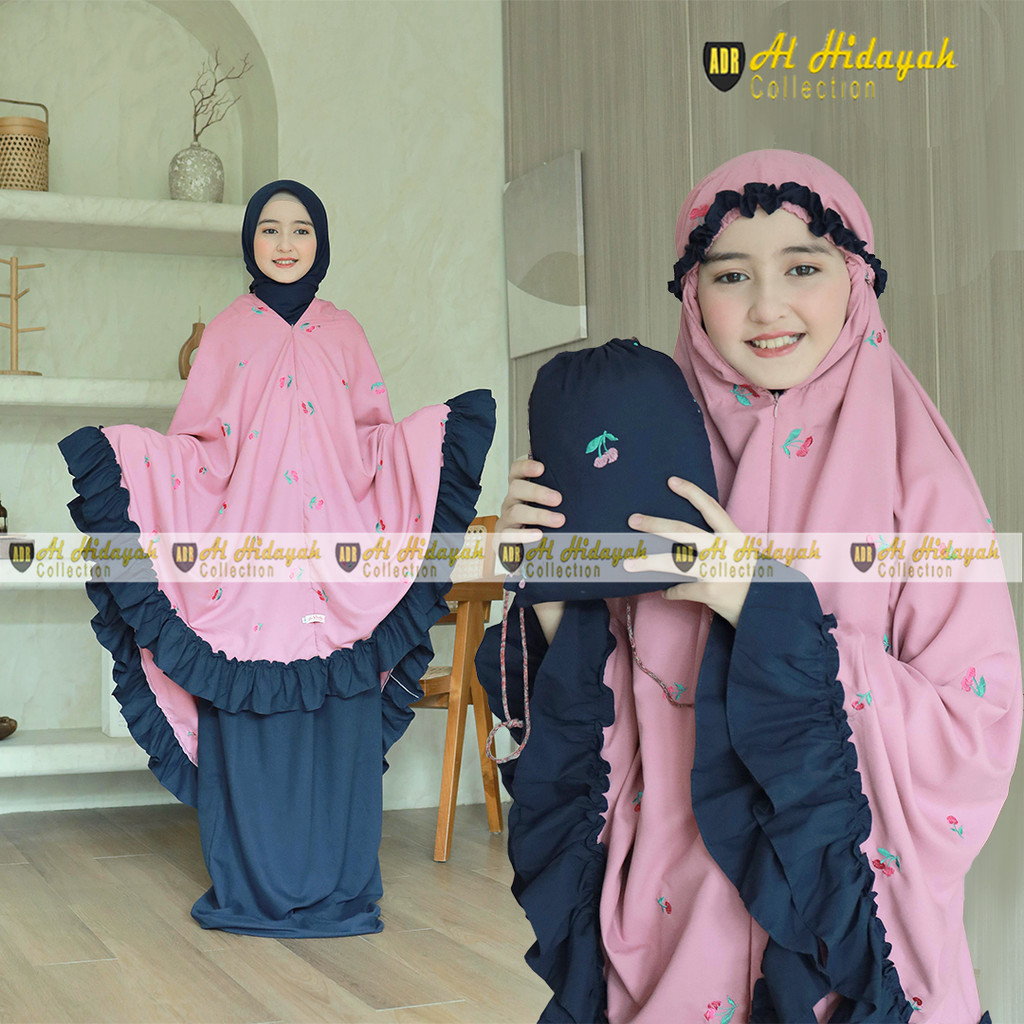 Mukena Anak Bordir Timbul Resleting Dagu 2 in 1 Katun Premium 5 6 7 8 9 10 11 12 13 14 15 Tahun Mukenah Tanggung Mewah SD SMP SMA