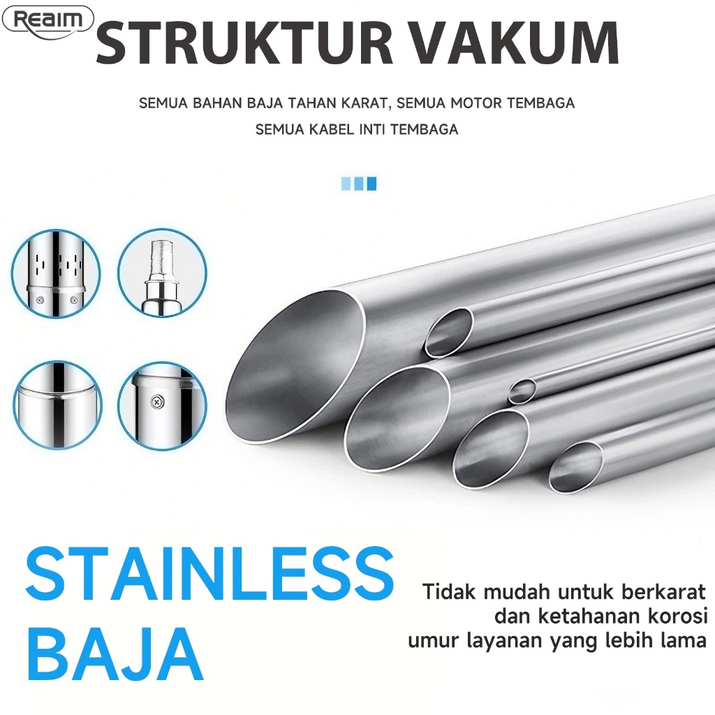 Reaim Pompa Air Satelit 3 Inch 0.75HP pompa air sumur dalam Stainless Steel Submersible Pump Pompa Air Celup Sumur Kabel 30 Meter