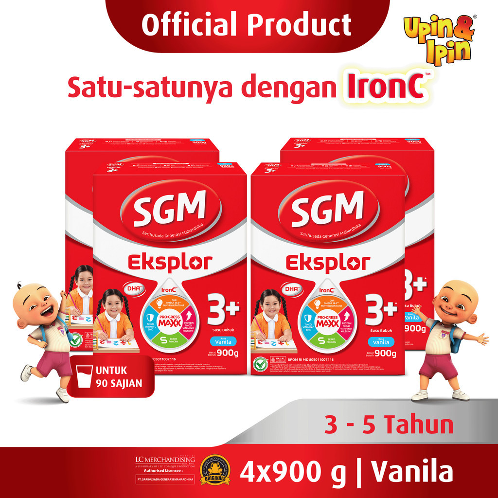 SGM Eksplor 3+ dengan IronC Susu Bubuk Rasa Vanilla 900GR x 4