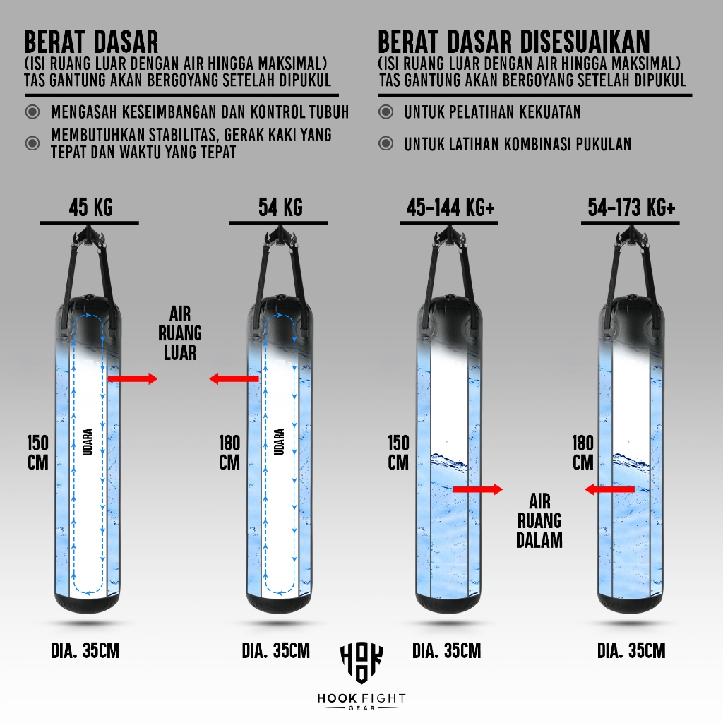 Samsak Air Udara 180Cm Hook Sansak Muay Thai Punching Bag Taekwondo Sandsack Silat Sarung Samsak Karate Samsak Tinju Gan