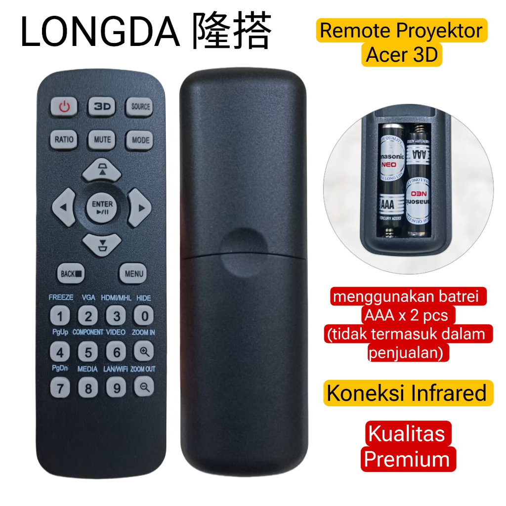 Remote Proyektor Acer 3D Kompatibel X1123H-X168H