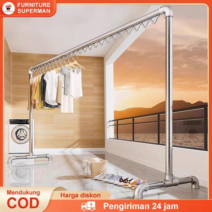 Furniture Superman Jemuran Baju Tabung Baja Stainless Steel 200Cm Minimalis Hanger Stand Dalam Rumah Rak Pipa Hemat Ruan