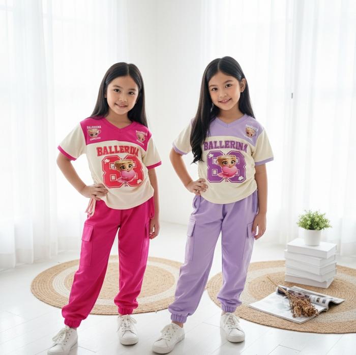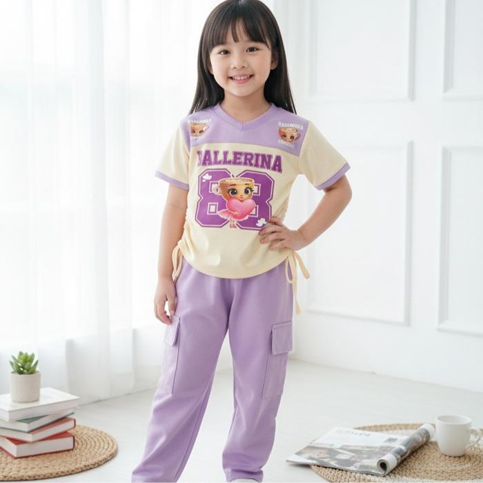 Setelan Anak Jersey Ballerina Cappucina Bahan Baby Terry - Oneset Rinjani Fashion - Lilac, M 2 Tahun