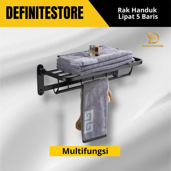 Rak Handuk Dinding Lipat Hitam Chrome Stainless Sus 304 Dan Kapstok Anti Karat Bagus Gantungan Baju Handuk Minimalis - C