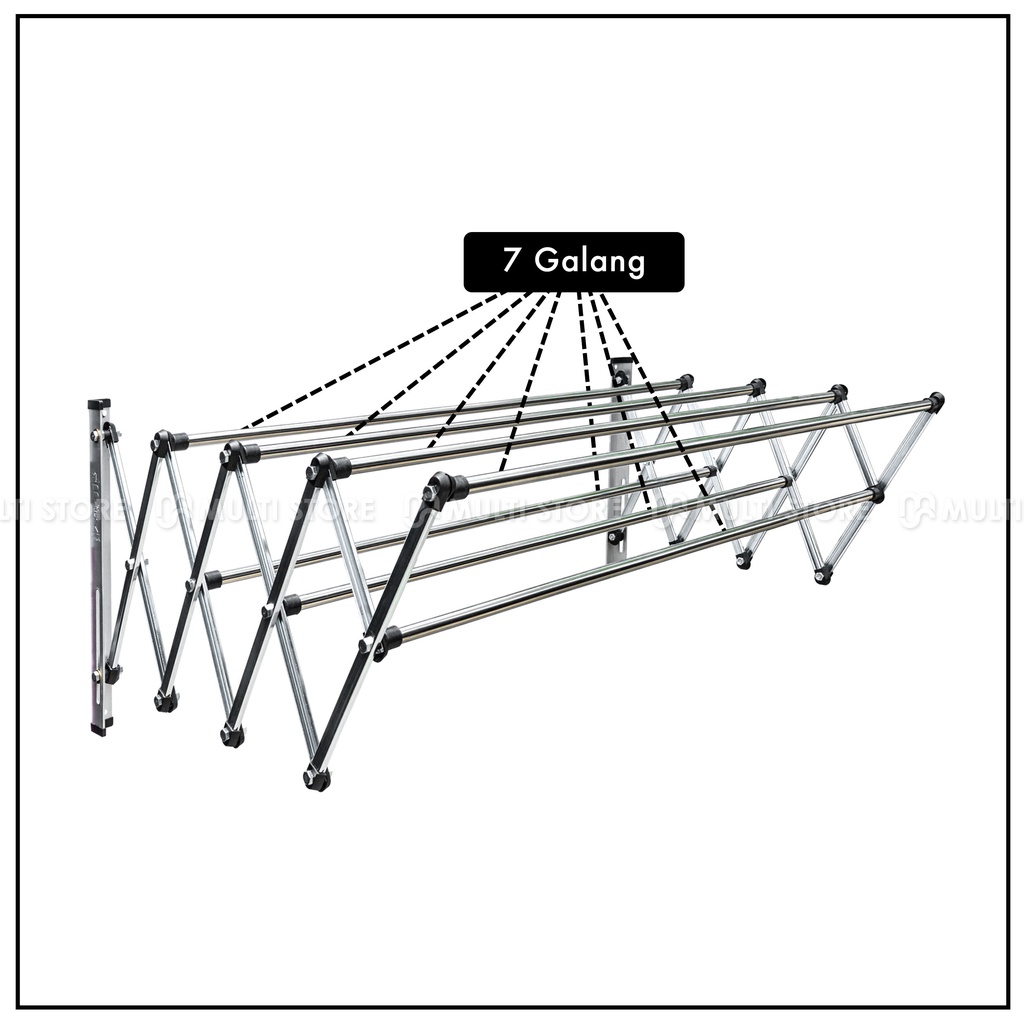 Jemuran Baju Dinding Lipat 200 Cm Pelbok Stainless Anti Karat 2 Meter
