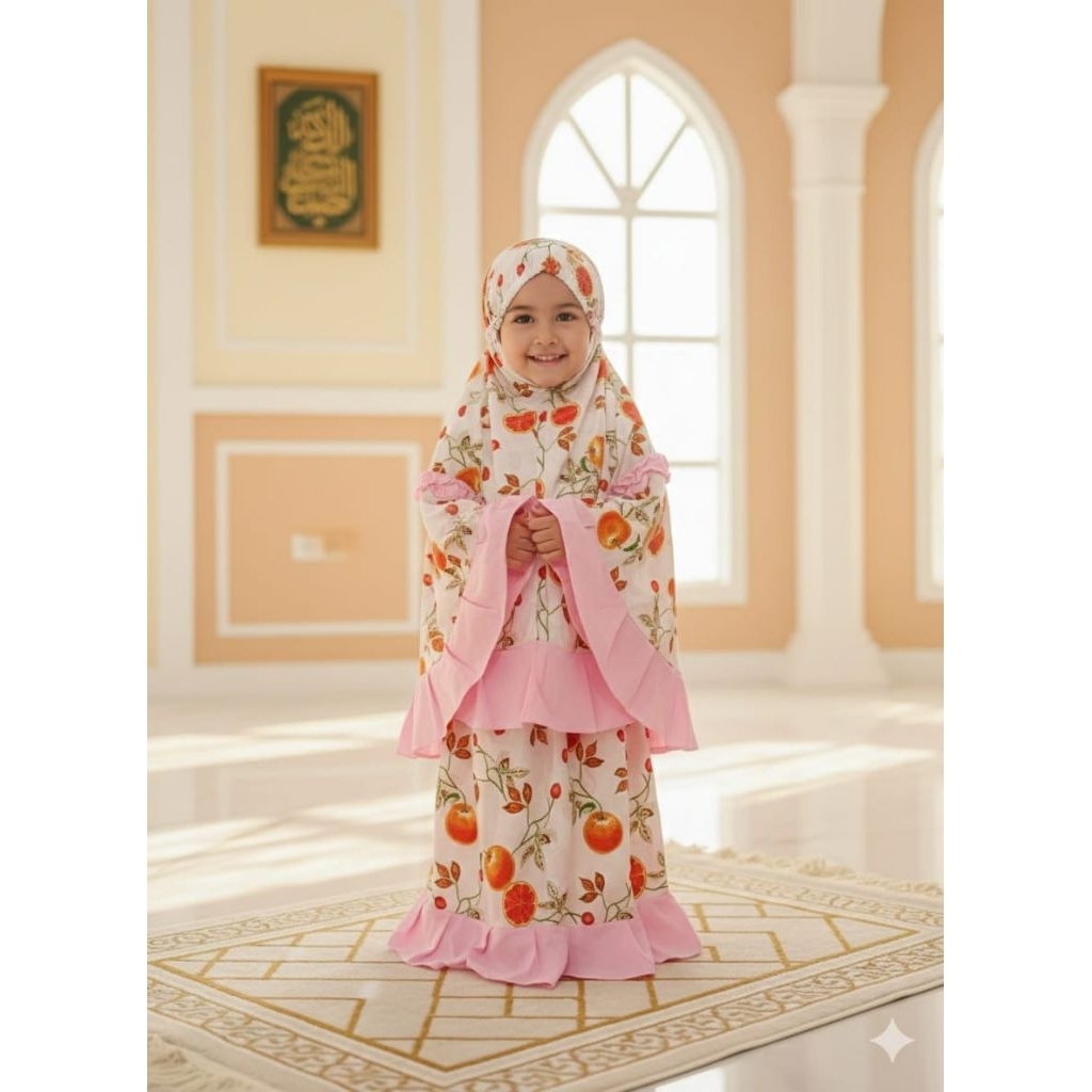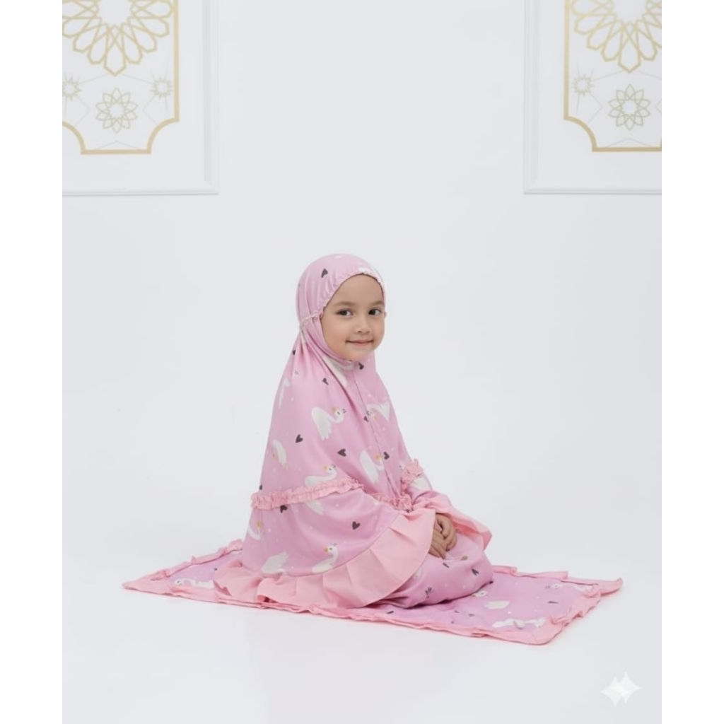 Mukena anak 3in1 motif karakter 3-9 tahun tas ransel bisa jadi sejadah bahan katun premium