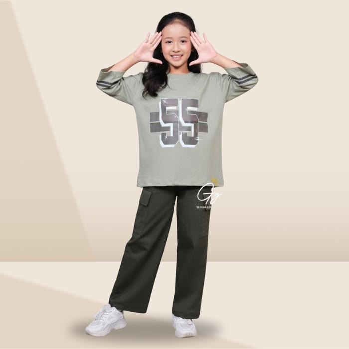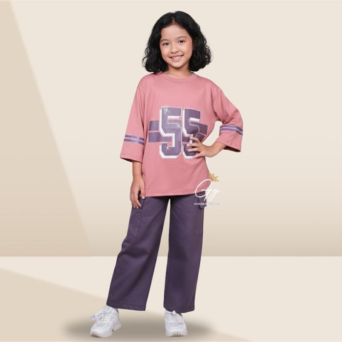 Oneset Jersey No 55 Anak Perempuan Combed Premium Size 1-12 Tahun By Gg Fashion | Setelan Celana Anak Perempuan Angka |