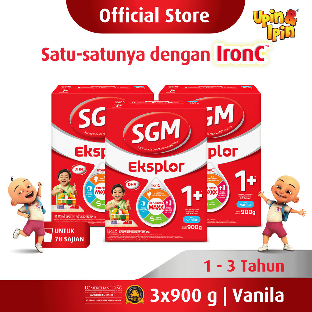 SGM Eksplor 1+ dengan IronC Susu Pertumbuhan Rasa Vanilla 900GR x 3