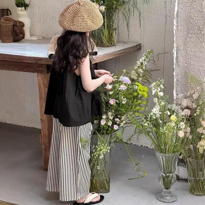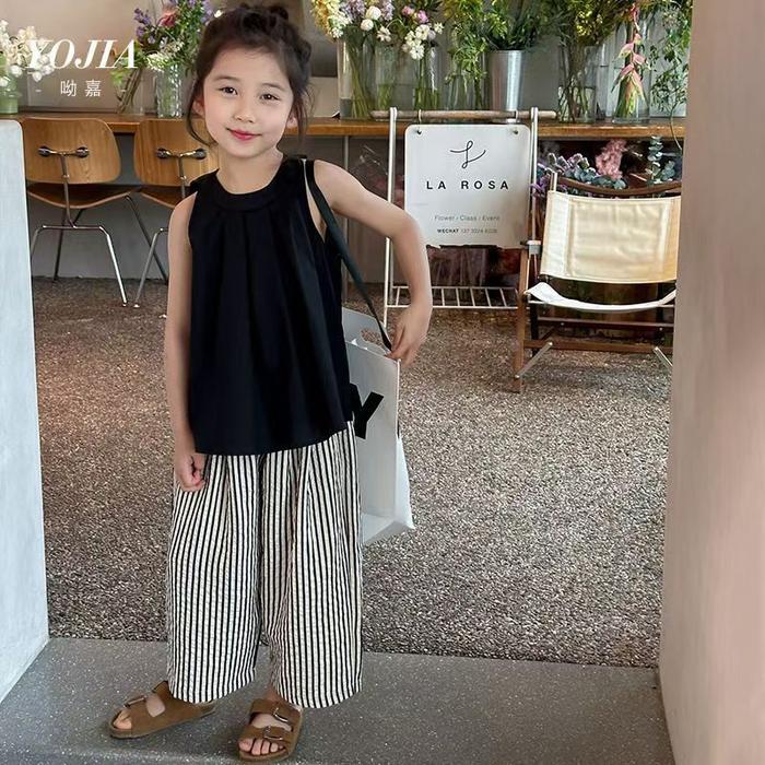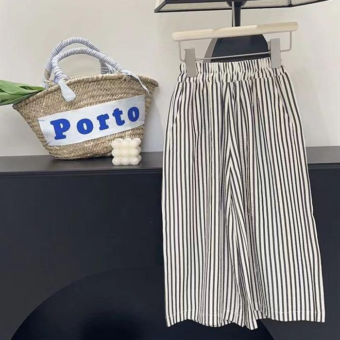 Celana Kaki Lebar Bergaris Korea Untuk Anak Perempuan Berusia 3-12 Tahun Kids Fashion - Garis-Garis, 1002-3 Tahun