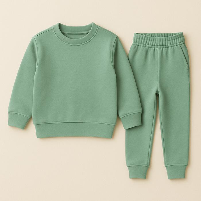 Kiddora Setelan Sweater Jogger Anak Unisex 1-12 Tahun Bahan Nyaman Tidak Gatal Size S-Xxl Cocok Sehari-Hari - Sage, S 1