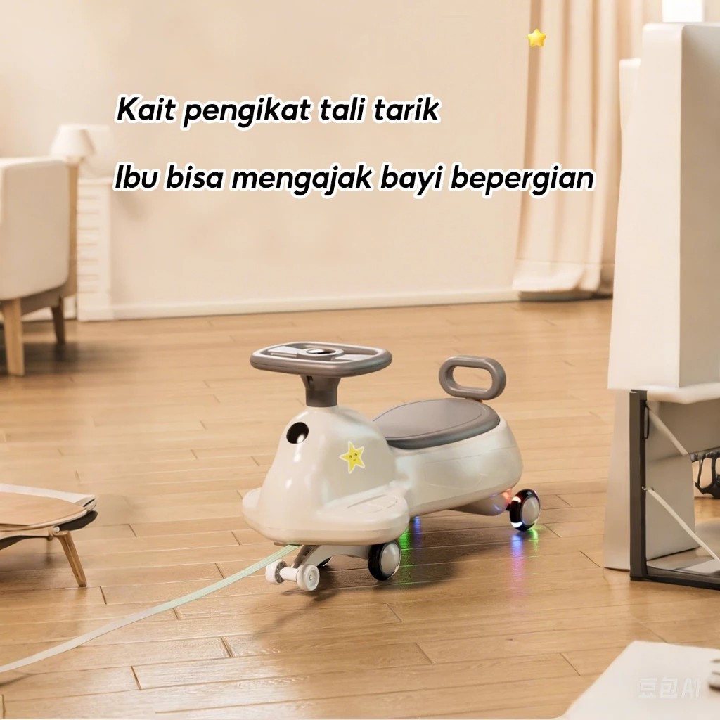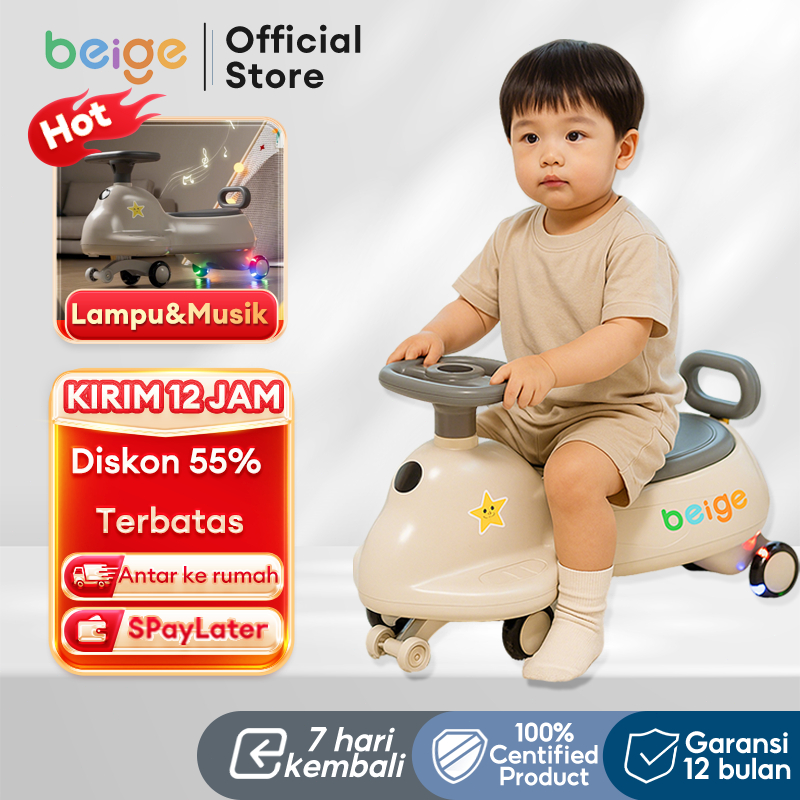 BEIGE YOYO CAR Mobil Dorong Anak 2in1 Ada Musik & Lampu, Portable - Umur 1-10 Thn