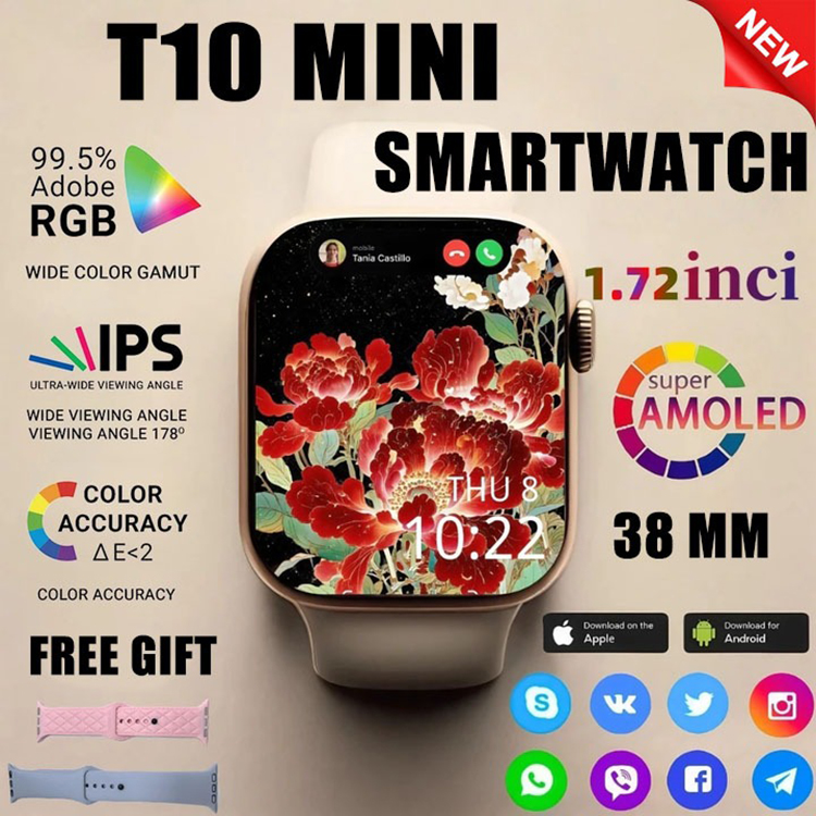 Smart Watch T10 Mini 1.72 Inci 38mm GPS NFC Waterproof Bluetooth Call Jam Smartwatch Wanita Pria Monitor Detak Jantung T