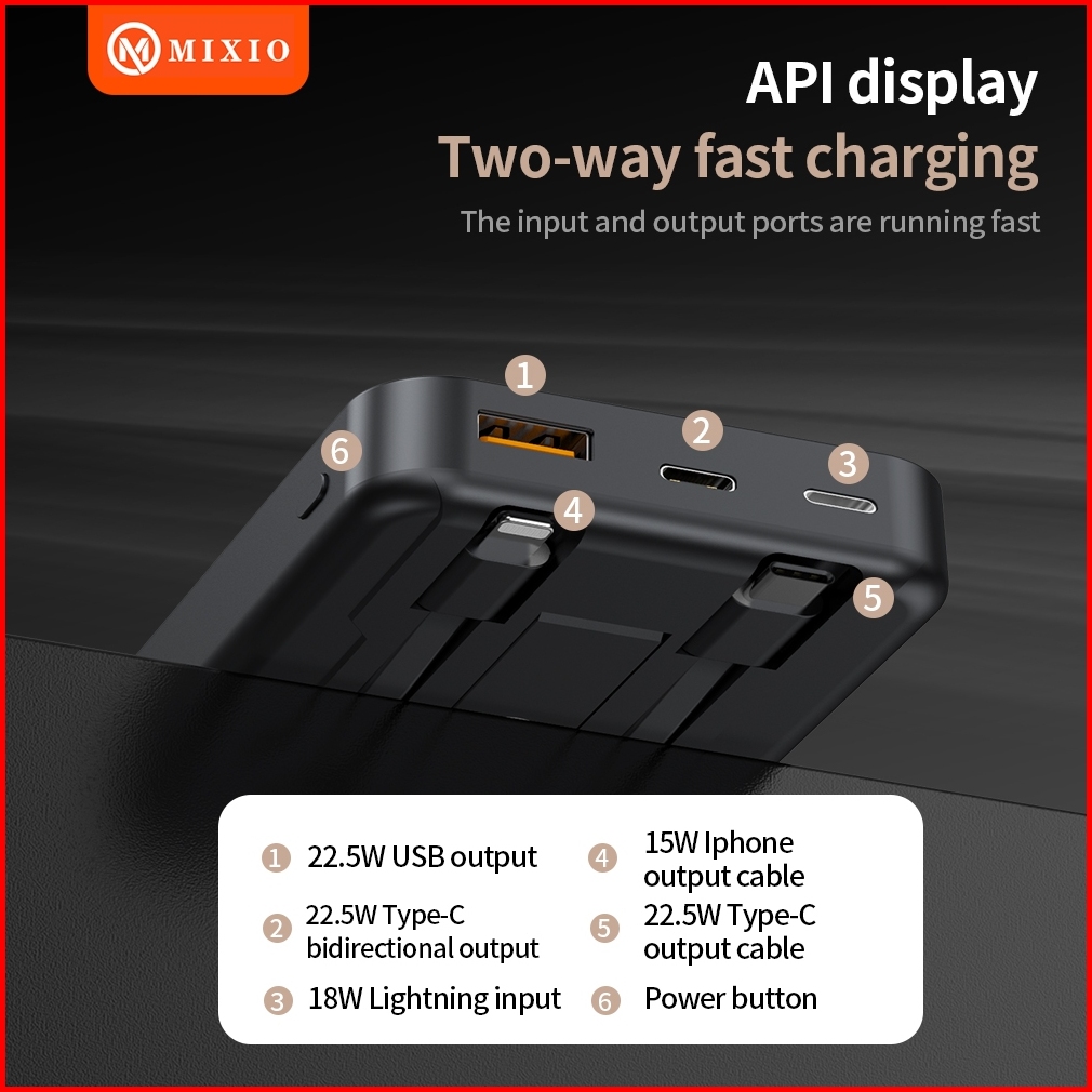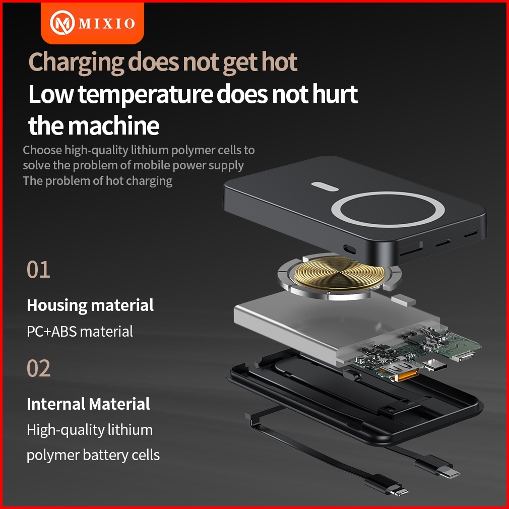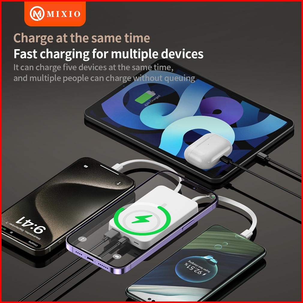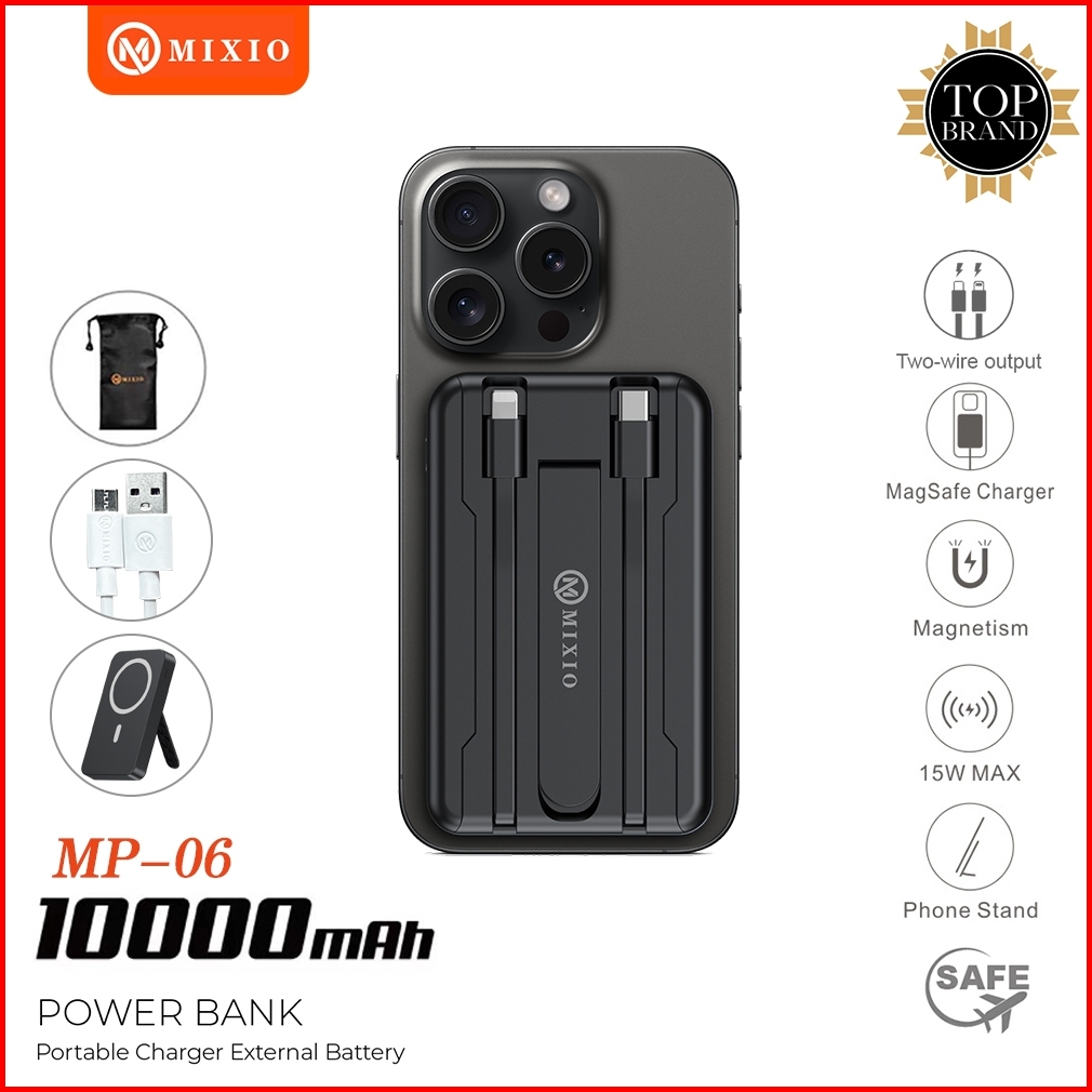 Mixio Mp-06 Wireless Power Bank 10000mah Magnetic Magsafe 20w Fast Charging Type C Pd Build In Kabel