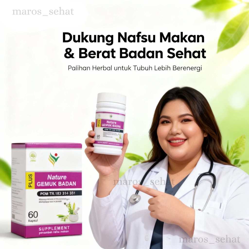 Vitamin Obat Gemuk Nature Herbal BPOM 60 Kapsul Bpom 100 PERSEN ORIGINAL Penambah Nafsu Makan Cepat dan Ampuh / Obat Gemuk Sehat / Suplemen Penggemuk Badan