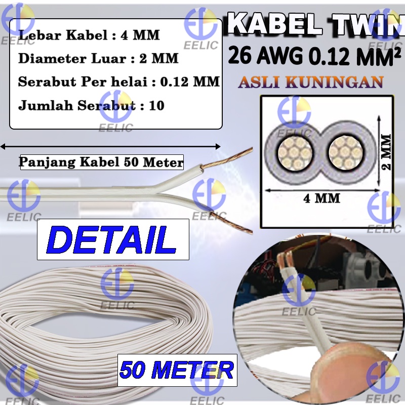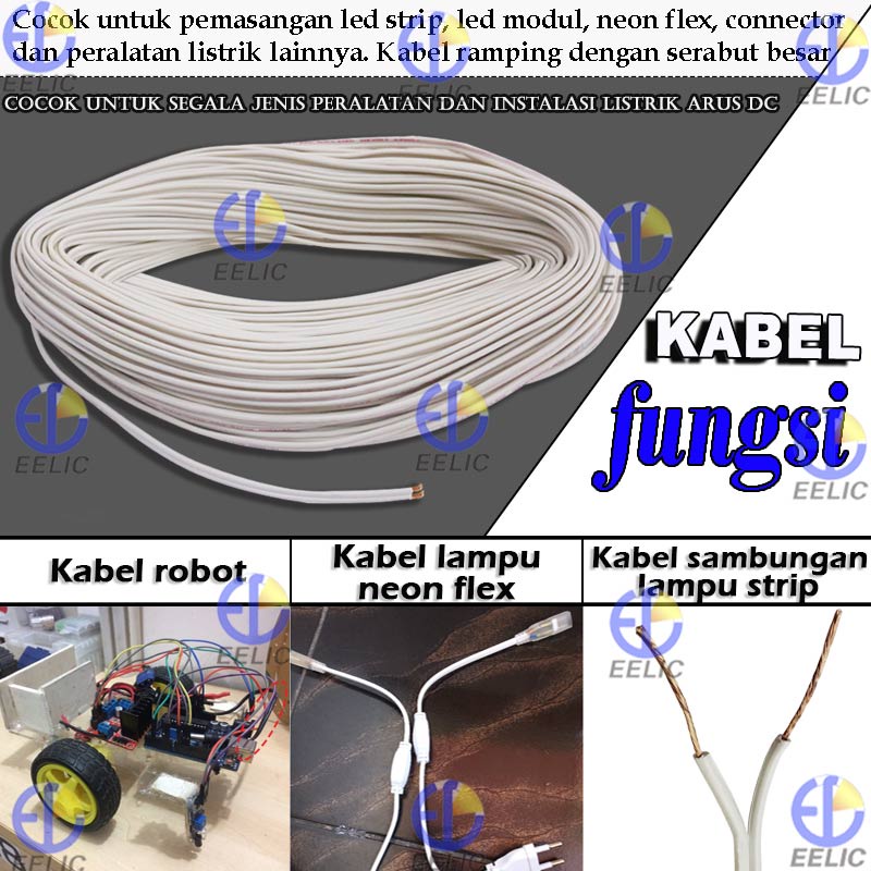 Eelic Kal-2X10 Kabel Twin Kabel 2 Cabang 2P 26Awg Ukuran 0.12 Mm2 Panjang 50Meter 10Pcs Serabut Per Kabel Bahan Tembaga