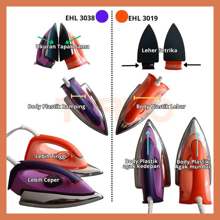 Turbo Dry Iron / Setrika Kering EHL3019 Anti Lengket Variasi Warna Menarik Original