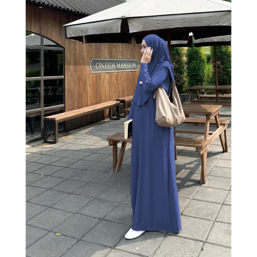 Gamis Mecca Abaya Set Kerudung Gamis Syar'i Terbaru Bahan Jersey Premium Abaya Umroh Busui Friendly
