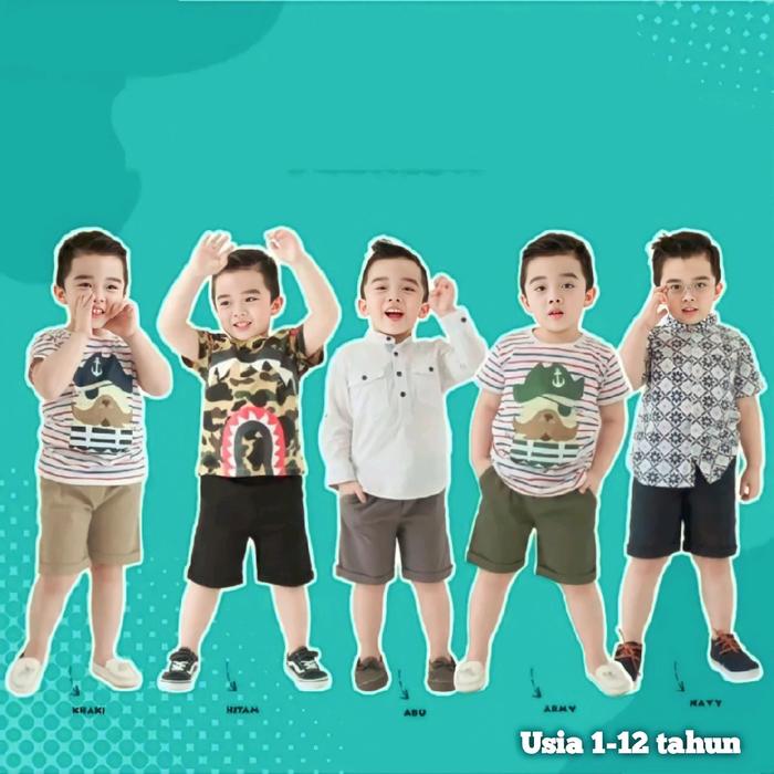 Celana Pendek Di Bawah Lutut Chinos Anak Usia 1-12 Thn Katun Laki-Laki Cowok - Paket Hemat 100Rb Dapat 5Pcs, S 1-3 Thn