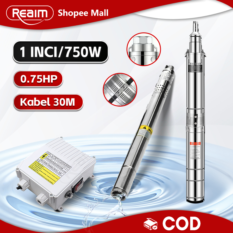 Reaim Pompa Air Sateli 1 inch Pompa Satelit 0.75HP 650W Kabel 30 Meter Pompa Air Sumur Dalam Submersible Pump Daya Hisap 25m