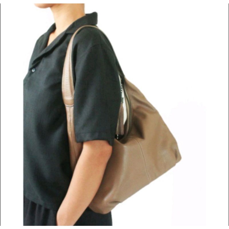 Tas Kulit Sapi Asli Hobbo Resleting 3 Bagian