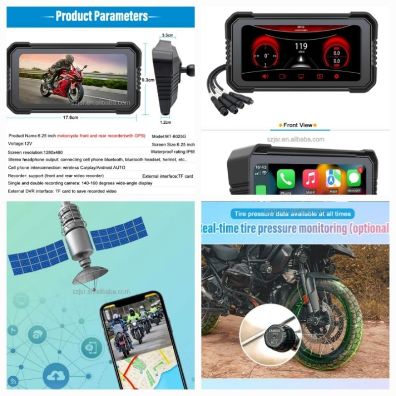 Gps Dashcam recorder motor navii 6.2in Maps android auto & Iphone Carplay, TPMS kamera HD1080P MT6025G
