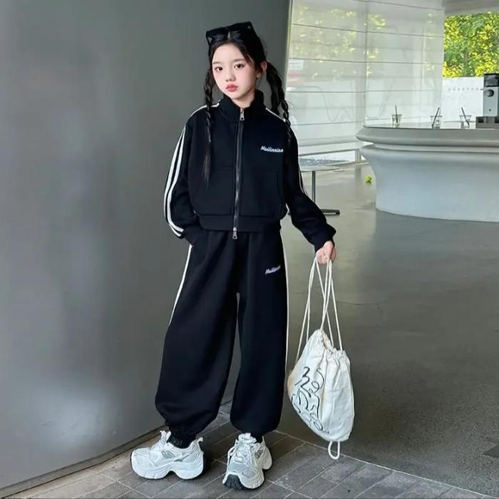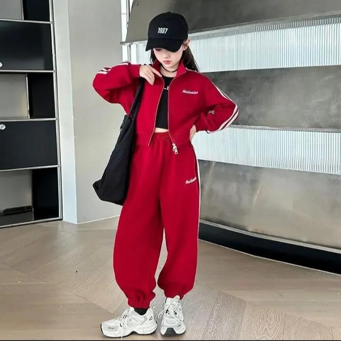 Setelan Baju Anak Perempuan Model Korea Sporty Terbaru Untuk Usia 1-12 Tahun Hitam Merah - Hitam, 3-6 Bulan
