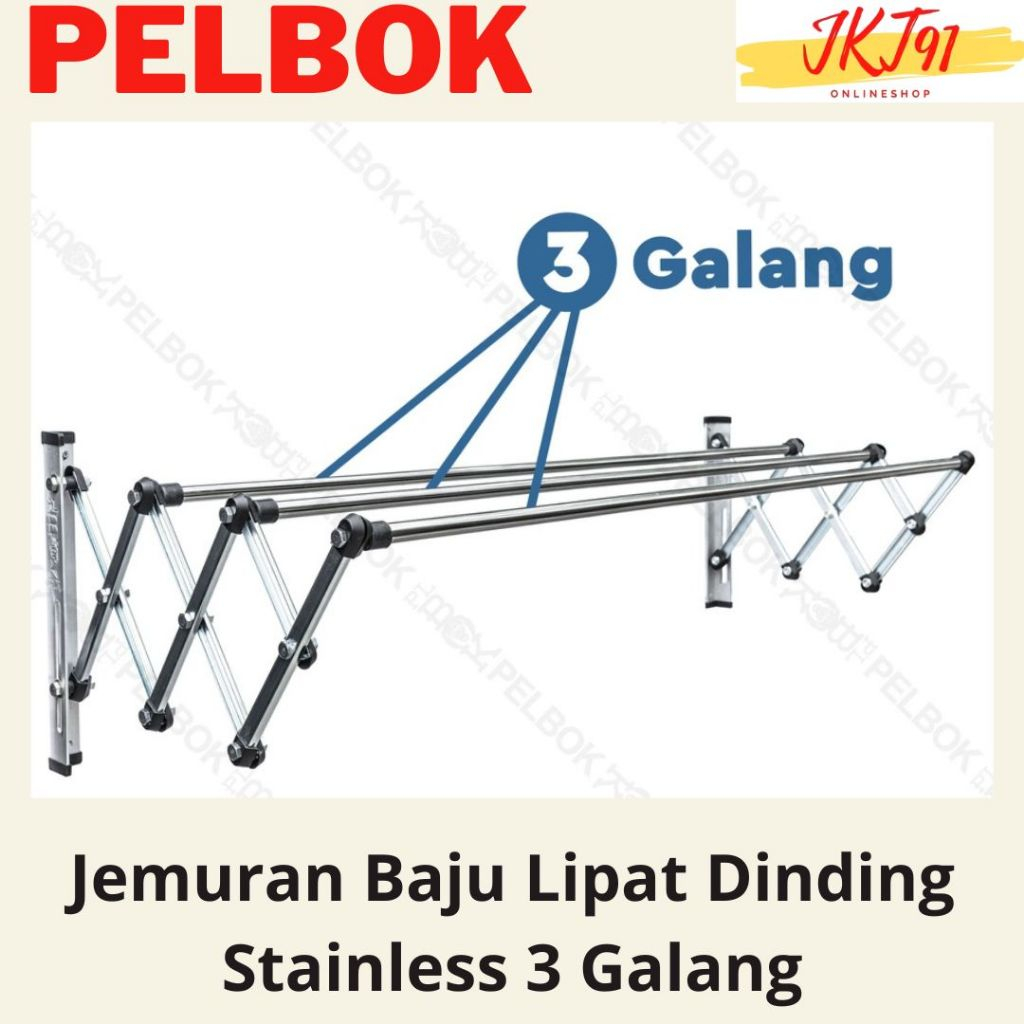 Plbok Single Jemuran Baju Pakaian Dinding Lipat Stainless Steel Rak Jemuran 80 100 120 150