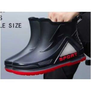 (111-071) SEPATU BOOTS PRIA KARET PENDEK HUJAN MOTIF PUTIH SPORT SAMPING SUPER PREMIUM ANTI SLIP KECE NYAMAN MOKAYA / UKURAN 40-45 - HITAM FULL, 40-41