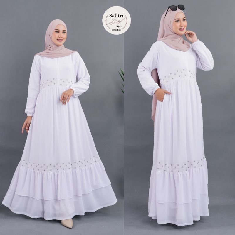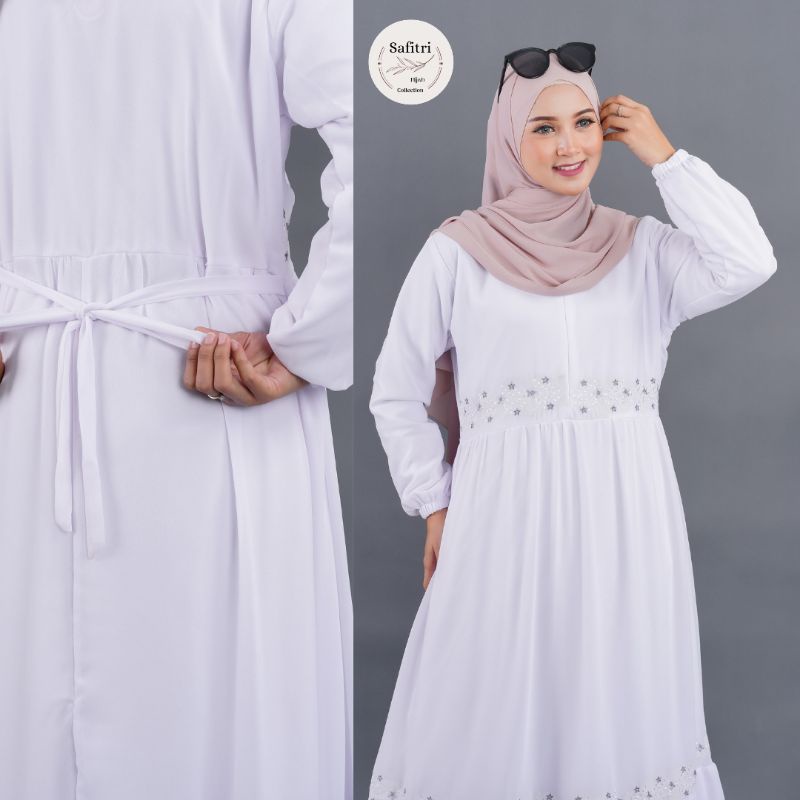 KHADIJA DRESS 1 Gamis bahan ceruty babydol putih bersih putih tulang broken white hitam Umroh/Manasik haji by Safitri Fa