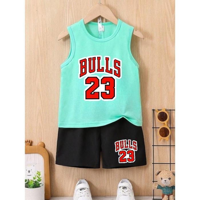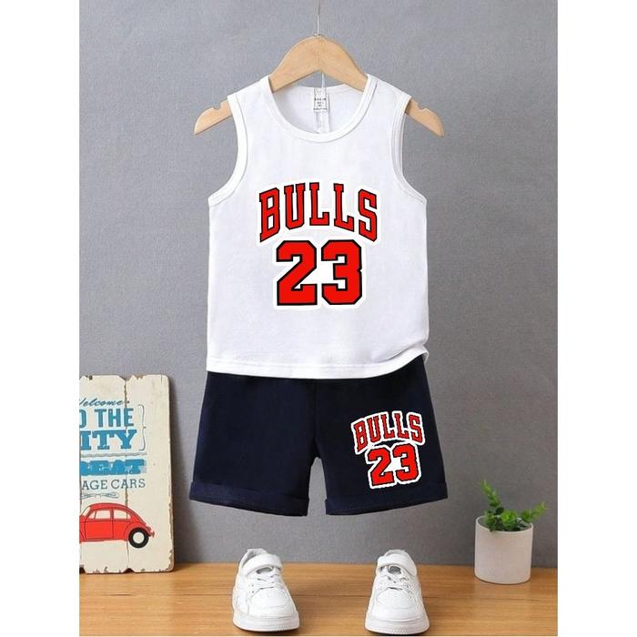 Lady House Setelan Singlet Basket One Set Anak Tanpa Lengan Unisex Celana Fashion - Merah, S13-15Kg
