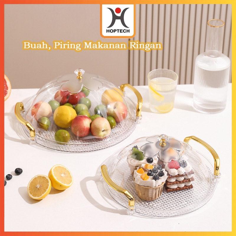 Hoptech -1 Set Tudung Saji Transparan Tempat Kue Bolu/Wadah Piring Penutup Makanan & Buah Praktis