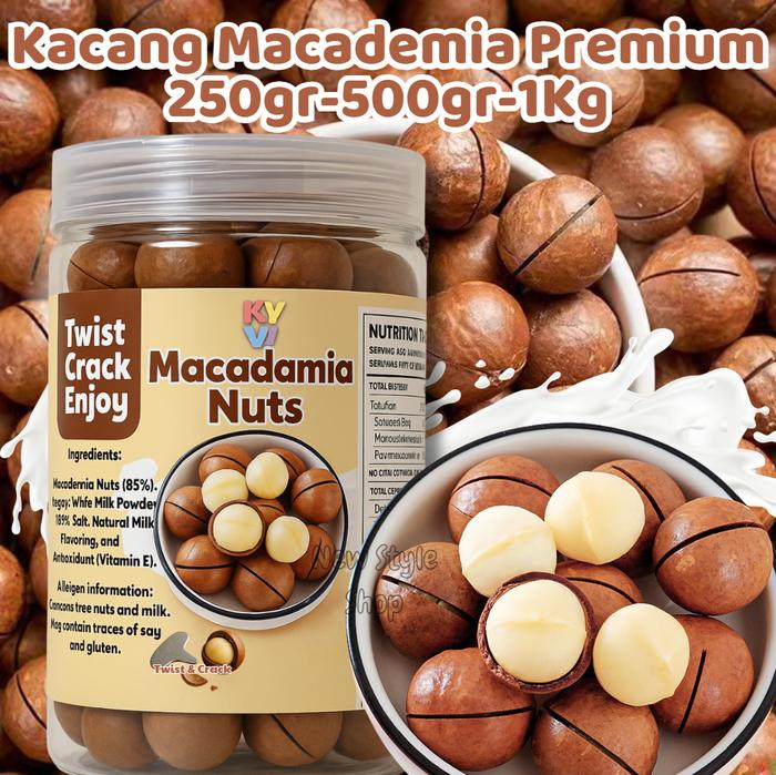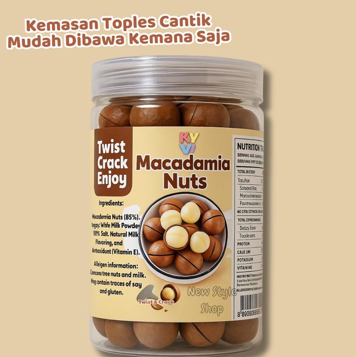 Kacang Macadamia Premium 250Gr-500Gr-1Kg Dengan Cangkang / Roasted Macadamia Nuts 250Gr Alat Pembuka Free Toples Camila