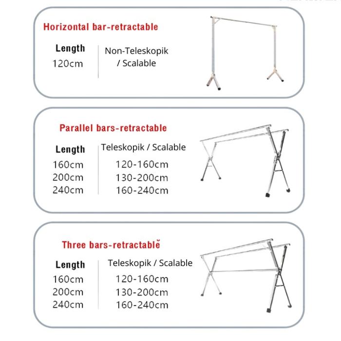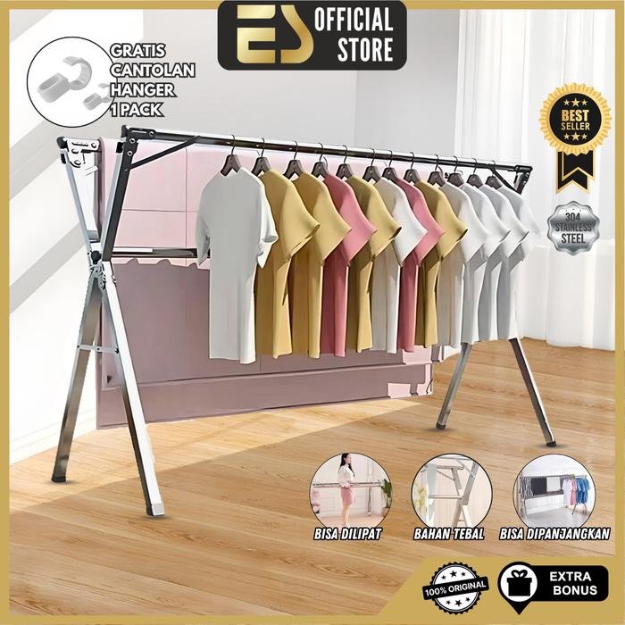 Es Jemuran Baju Stainless Jemuran Lipat Kuat Kokoh Tahan Karat Portable Bisa Dilipat Bahan Tebal Bisa Dipanjangkan