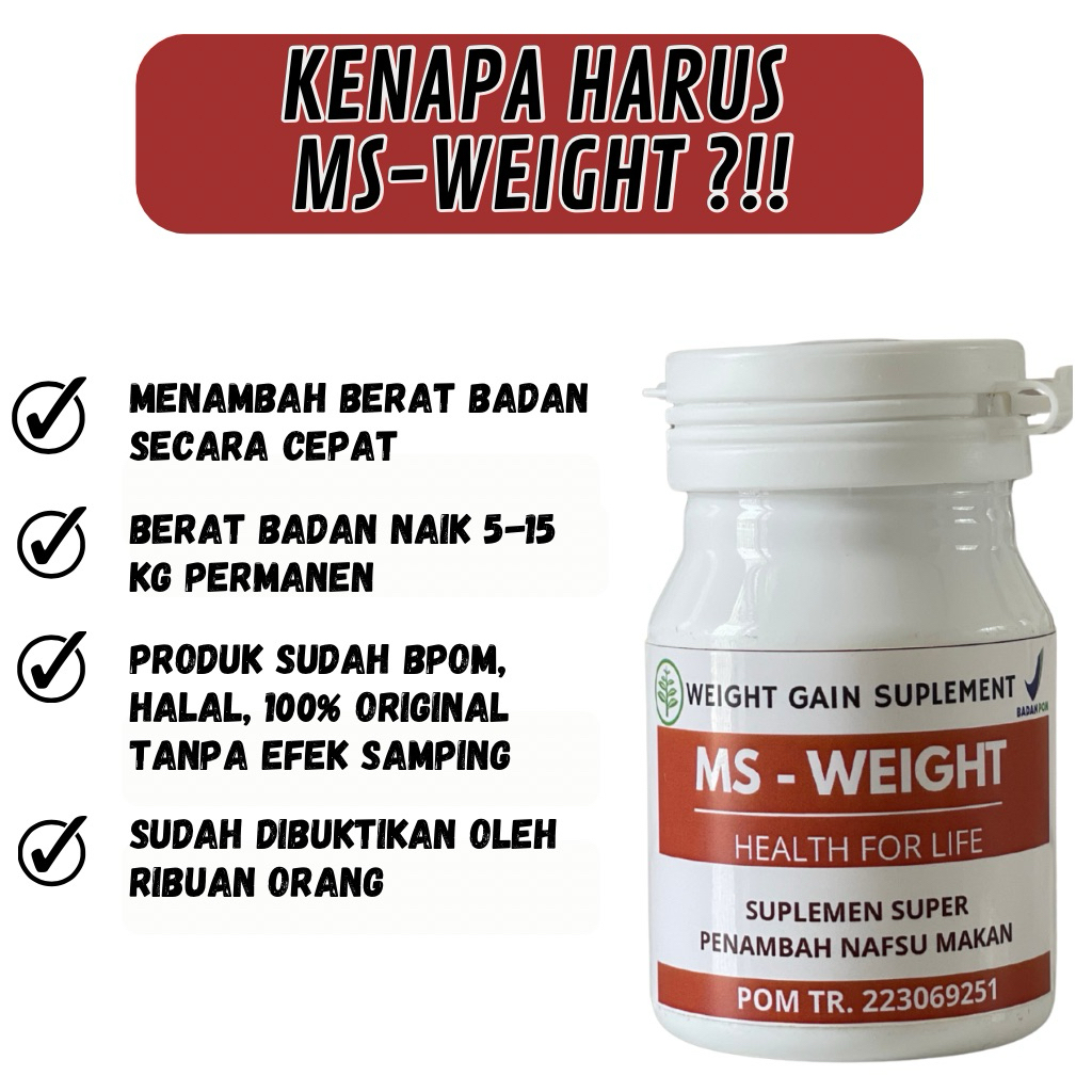 PENGGEMUK MS WEIGHT HERBAL BPOM / PENAMBAH BERAT BADAN GEMUK MERATA PERMANEN TANPA EFEK SAMPING