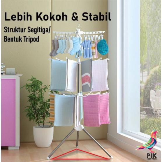 Jemuran Menara Lipat Jemuran Baju 3 Susun 10 Jari