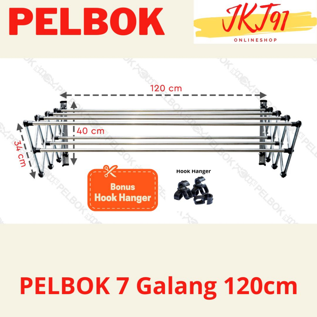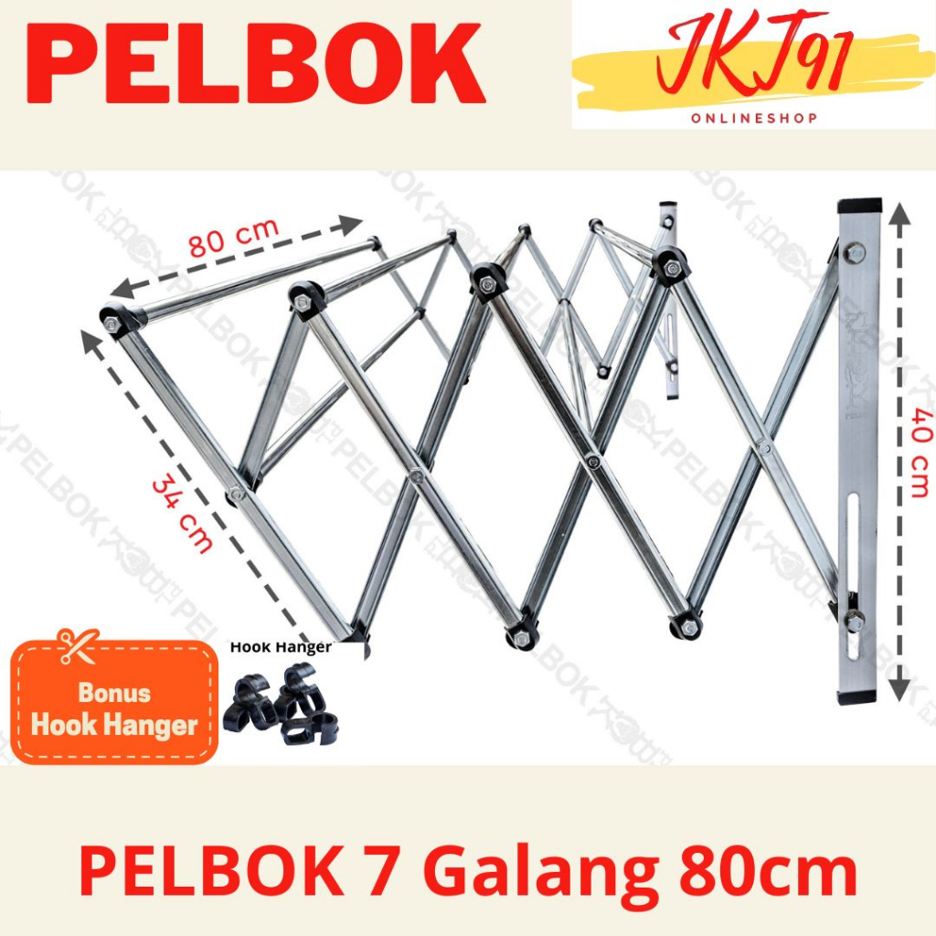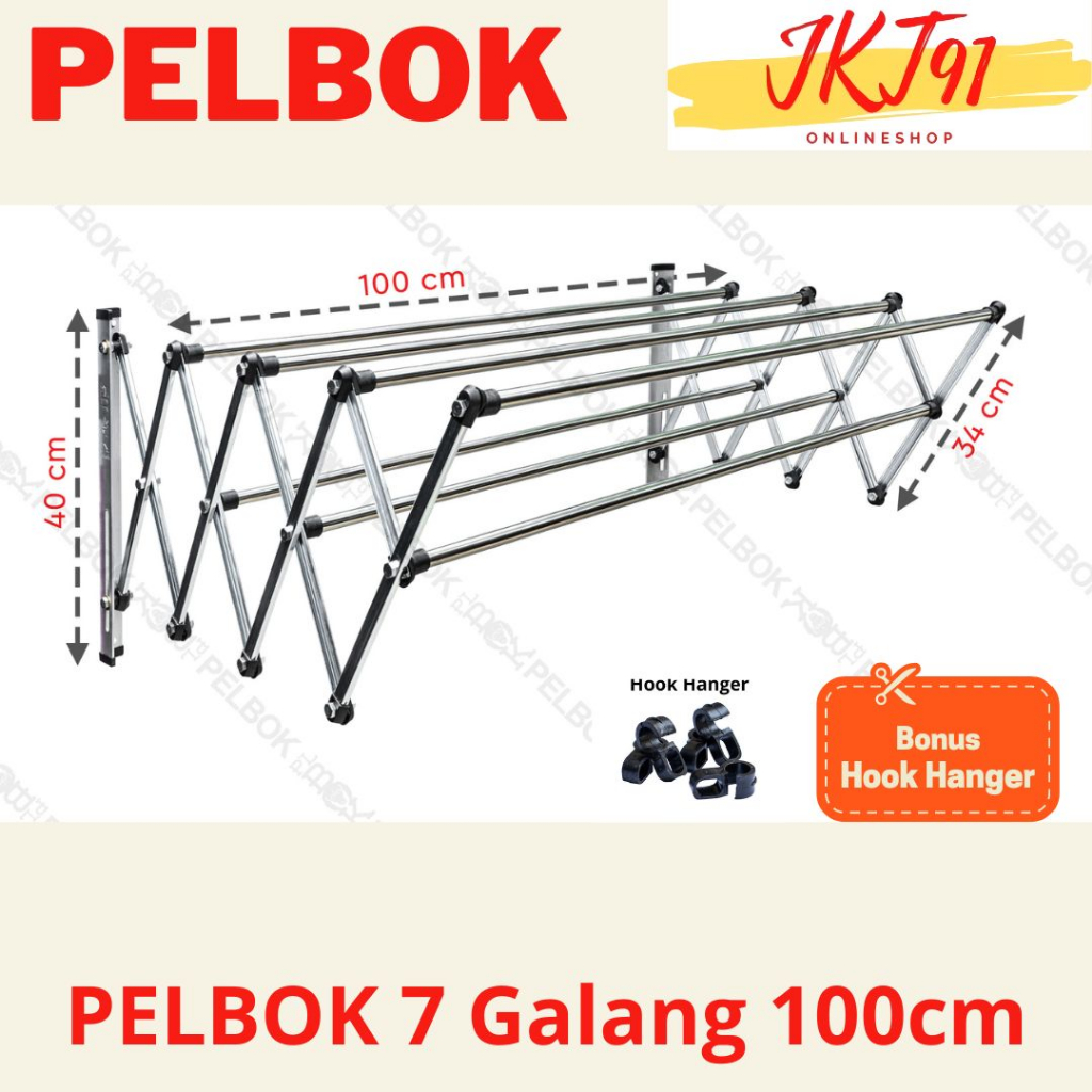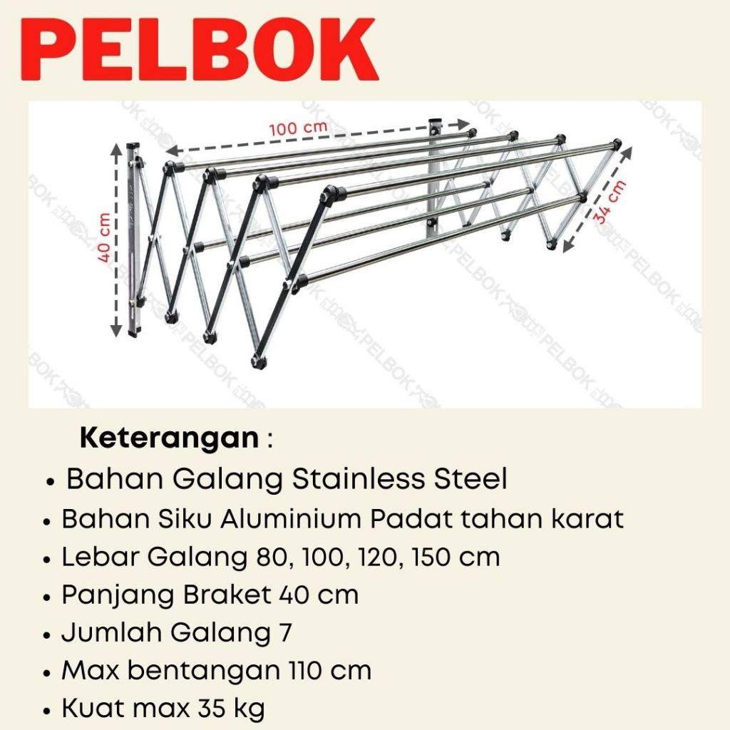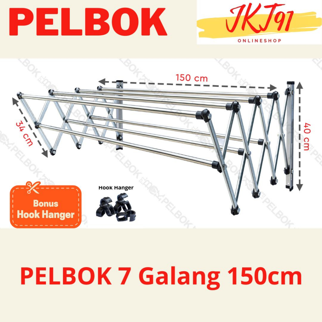 Pelbok Jemuran Baju Pakaian Dinding Lipat Stainless Steel Rak Jemuran 7 Galang 80 100 120 150 200