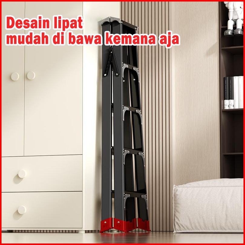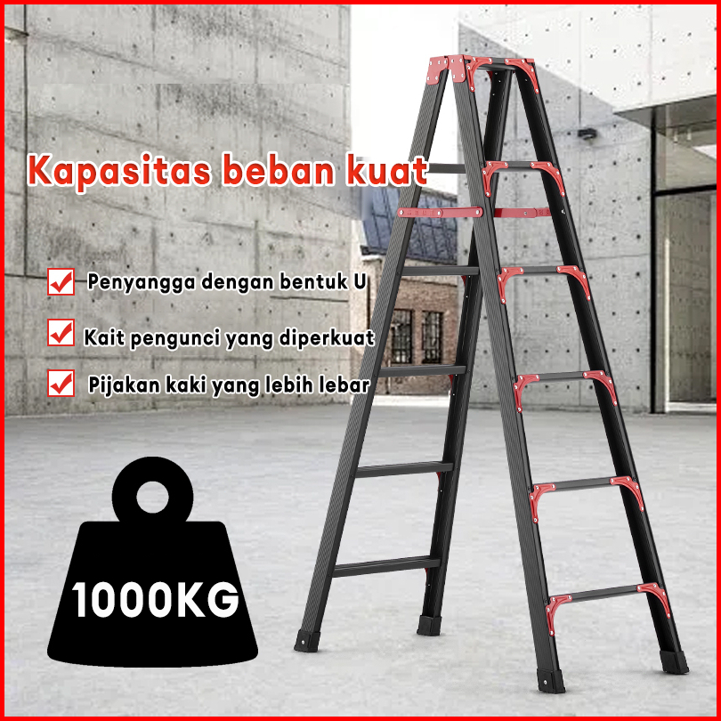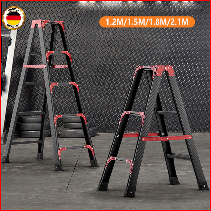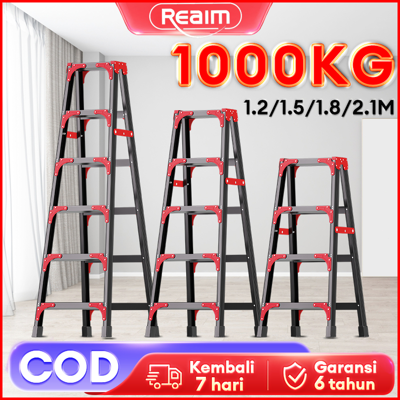 Reaim Tangga Lipat Aluminium Portabel 1.2 1.5 1.8 2.1meter Kokoh Tebal Kuat Hitam Multifunction Household Ladder