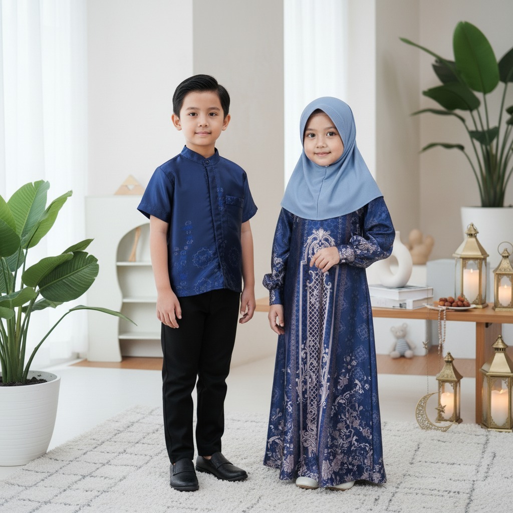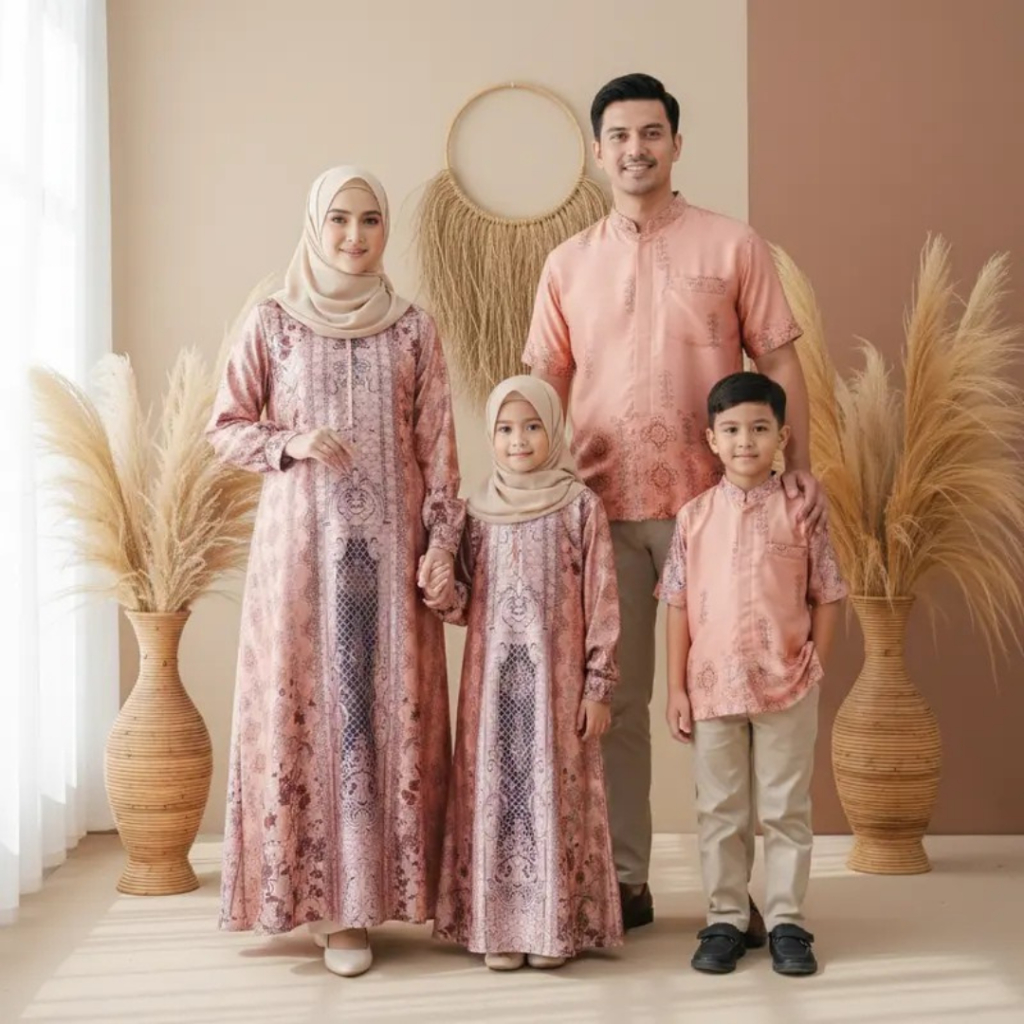 KEISHA_RHEVA Haliza Sarimbit Couple Keluarga Silk Motif / Fashion Gamis & Koko Muslim Terbaru Edisi Lebaran 2026