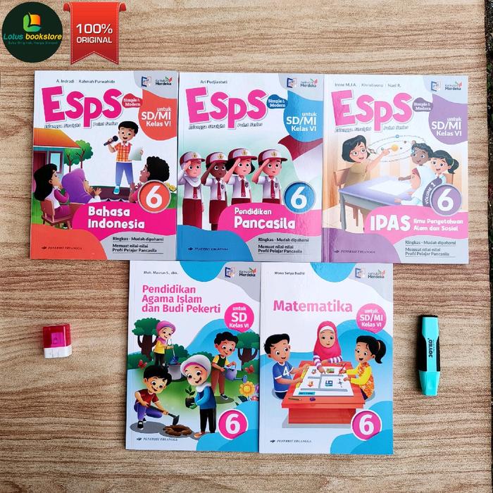 Seri Esps Sd Kelas 6 - Matematika - Ipas - Pancasila Islam Indonesia - Penerbit Erlangga - Kurikulum Merdeka - Buku Orig
