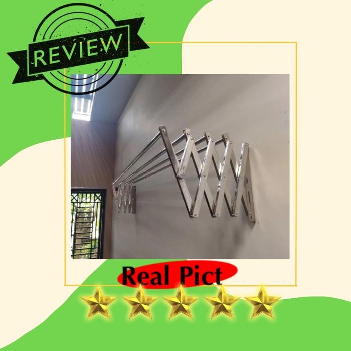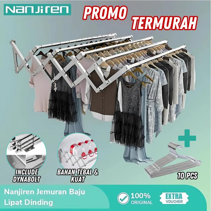 Nanjiren Jemuran Baju Tempel Dinding Lipat Rak Tarik Stainless Steel 100 - 200Cm Super Kuat Anti Karat Set Rak Pen