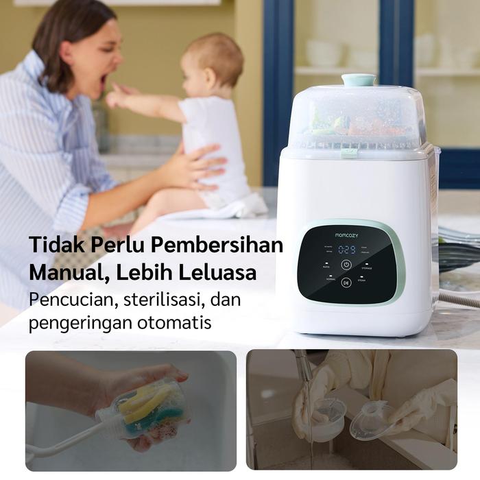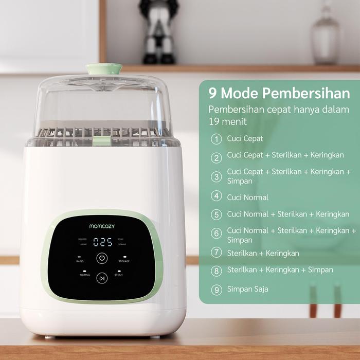 MOMCOZY BOTTLE WASHER & STERILIZER 3-IN-1 DENGAN AUTO DISH DRYER — 26 NOZEL SEMPROT UNTUK PEMBERSIHAN LEBIH MENYELURUH, COCOK UNTUK SEMUA JENIS BOTOL BAYI