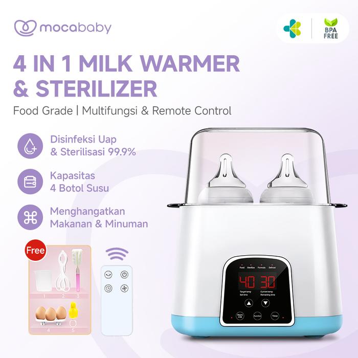 MOCABABY STERILIZER BOTOL BAYI MULTIFUNGSI ALAT STERIL DAN PENGHANGAT BOTOL SUSU MINUM BAYI DENGAN REMOTE CONTROL DAN 5 HADIAH GRATIS MESIN STERILISASI BOTTLE AMAN UNTUK BAYI - BIRU, FEEDING+REMOTE