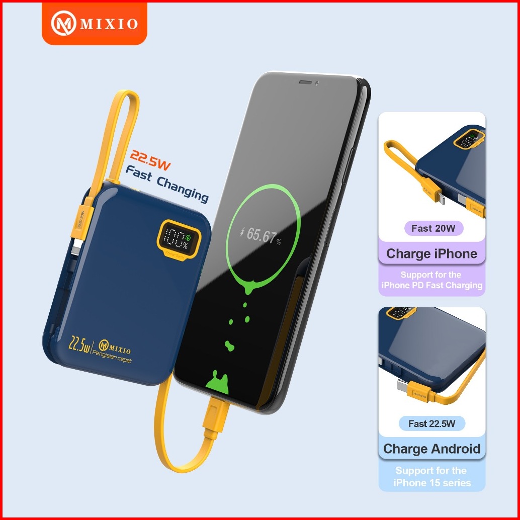 Mixio Mp-08 5000mah Powerbank Mini 20w With Kabel Fast Charging Lightning Type C For Iphone Android