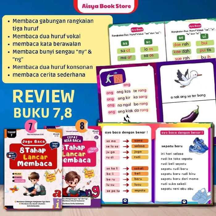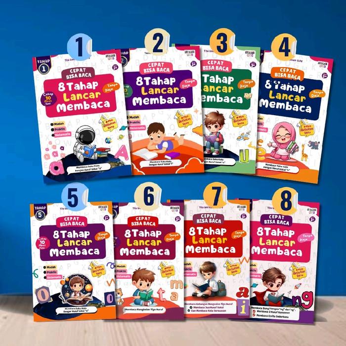 Paket Isi 8 Buku 8 Tahap Lancar Membaca Anak Tk, Paud, 1 Sd, Tanpa Mengeja Pustaka Iltizam Solo