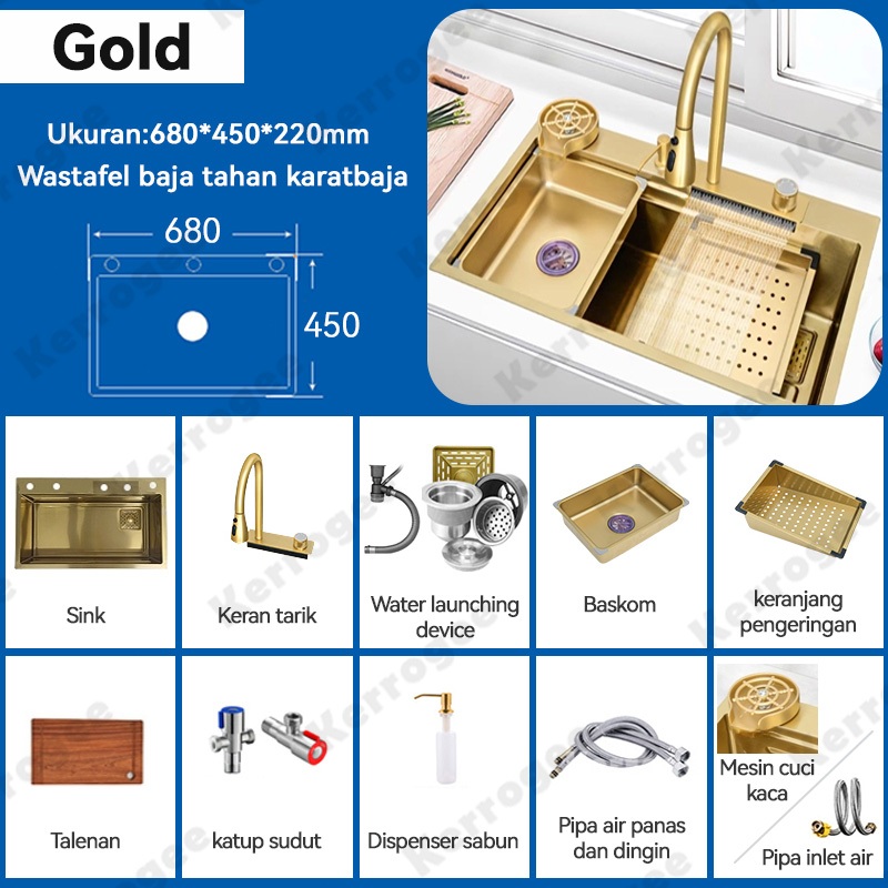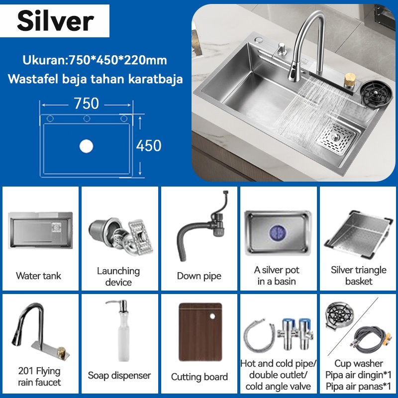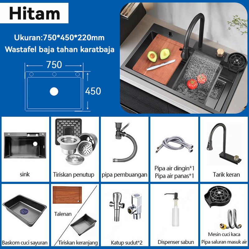 Kitchen Sink Stainless 304 Luxury Bak Cuci Piring Waterfall6845/754