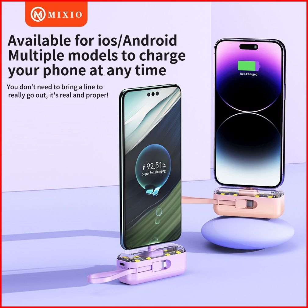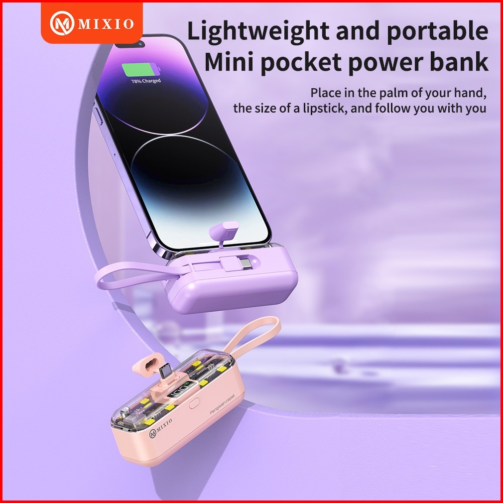 Mixio Mp-04 Powerbank 5000mah Portable Mini Transparan Lightning Ios Type C Pd Fast Charging With Led