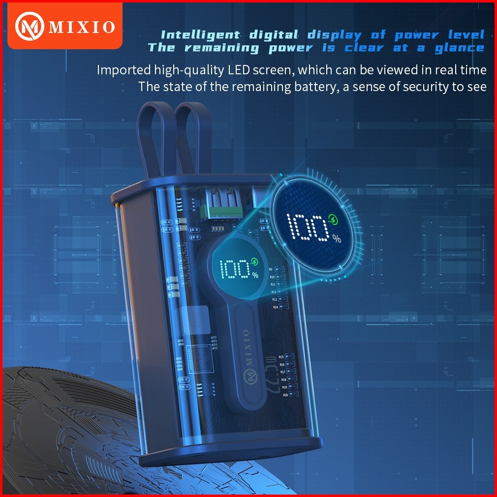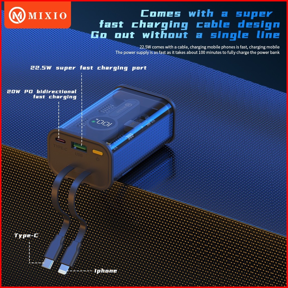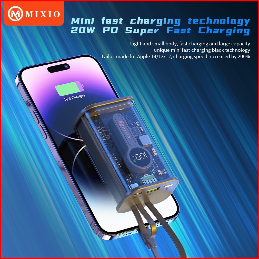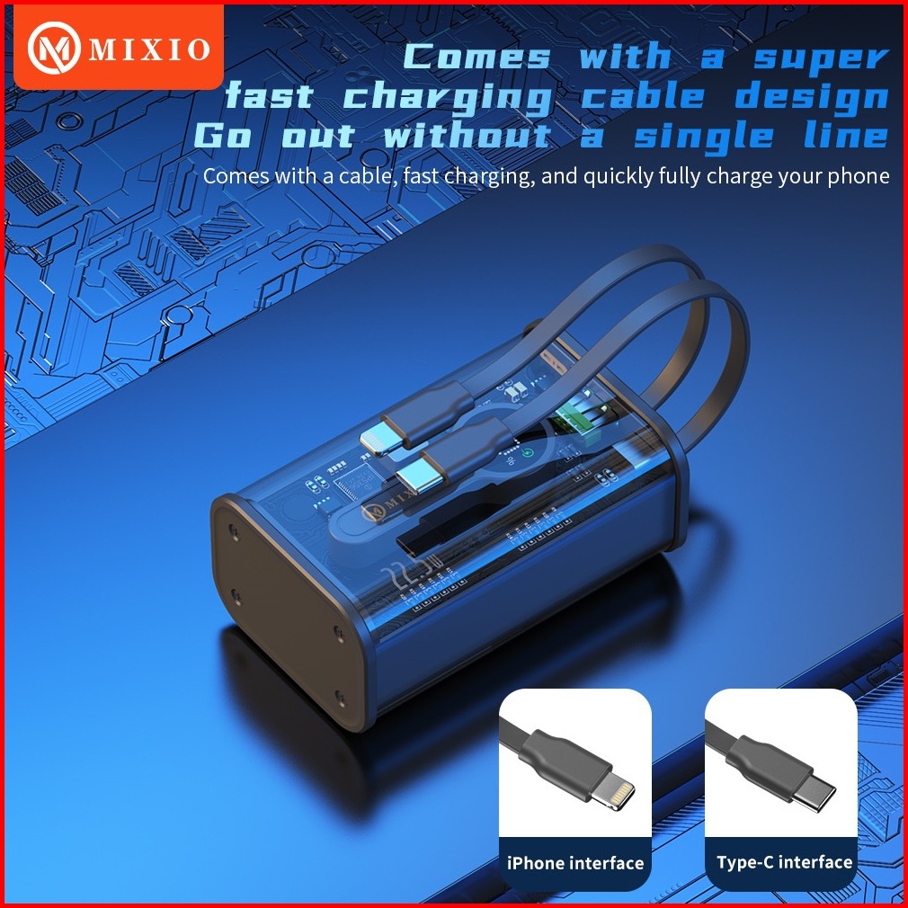 Mixio Mp-03 10000mah Powerbank Transparant Kabel Fast Charging Pd Ios