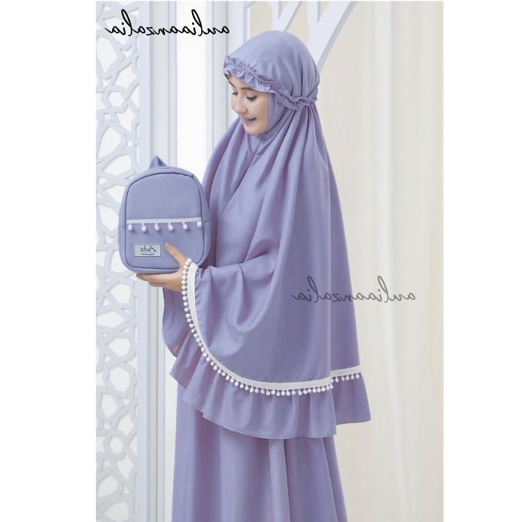 Mukena Anak Lucu Tas Ransel Umur 2–12 Tahun Katun Premium Pompom