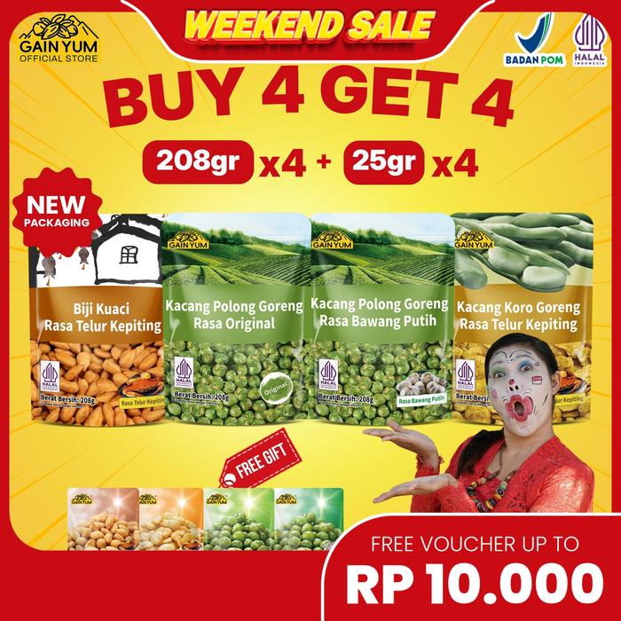Gain Yum - Buy 4 Get 4 All Variants 208 G Kacang Koro Kacang Polong Kuaci Kupas Stik Udang - Buy 4 Get 4 - Varian 1