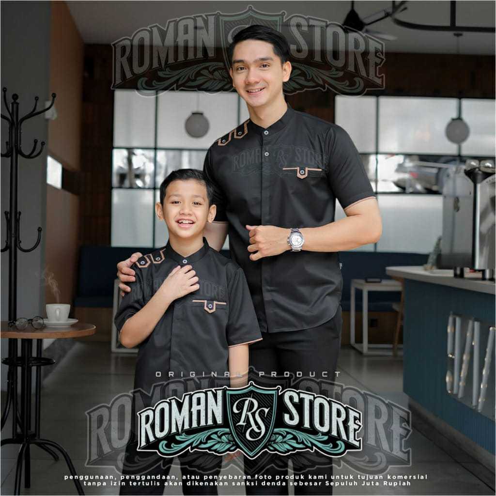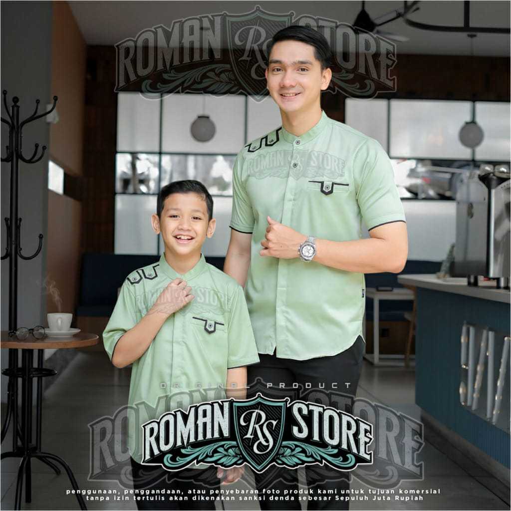Baju Koko Couple Ayah Anak Laki Laki Bahan Toyobo Import Terbaru 2026 WARNA EMERALD / MAHOGANY